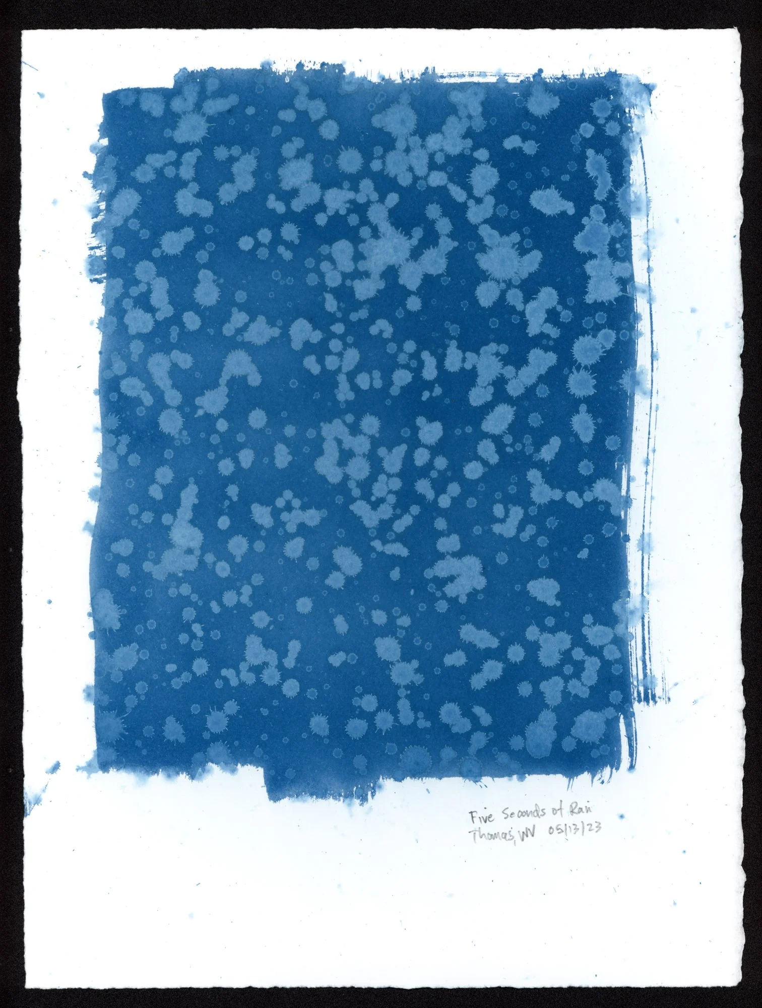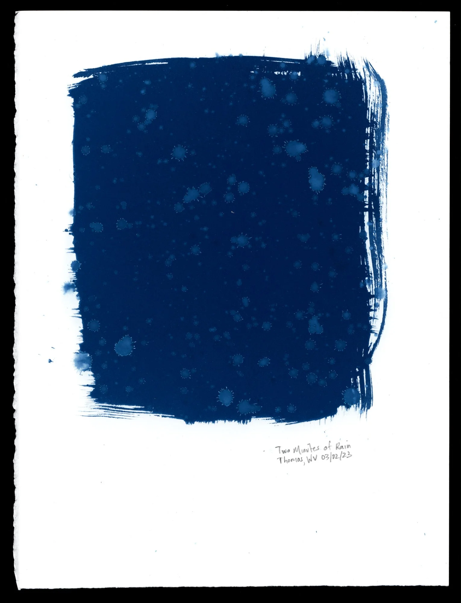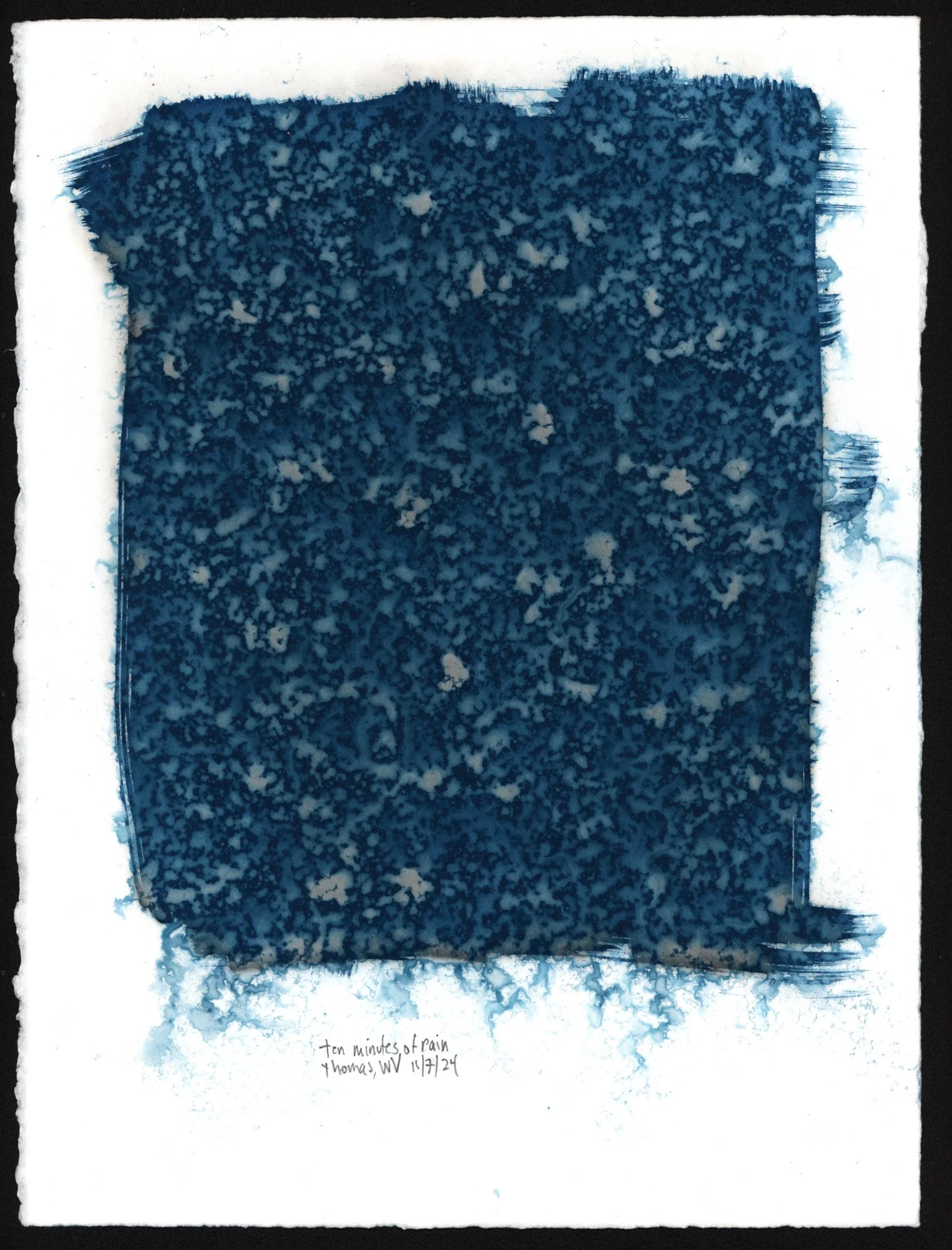 This series is an attempt to observe the microclimate shift atop the ridge where I live, and to engage with the rainforest nature of the place. I use the 19th-Century Van Dyke and Cyanotype photographic processes to make these records of water and sunlight. I see them as visual artifacts from my immediate personal and atmospheric environment.
