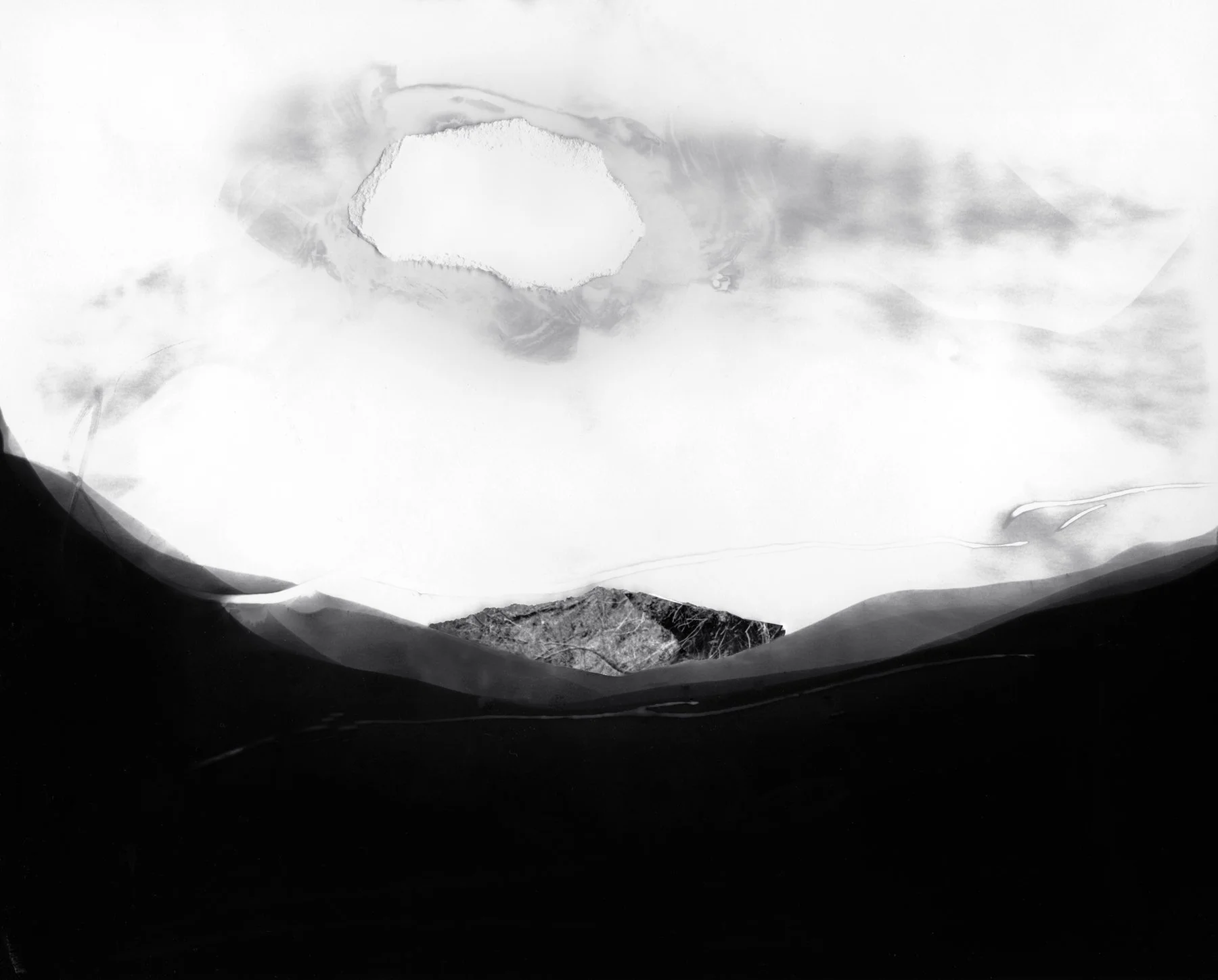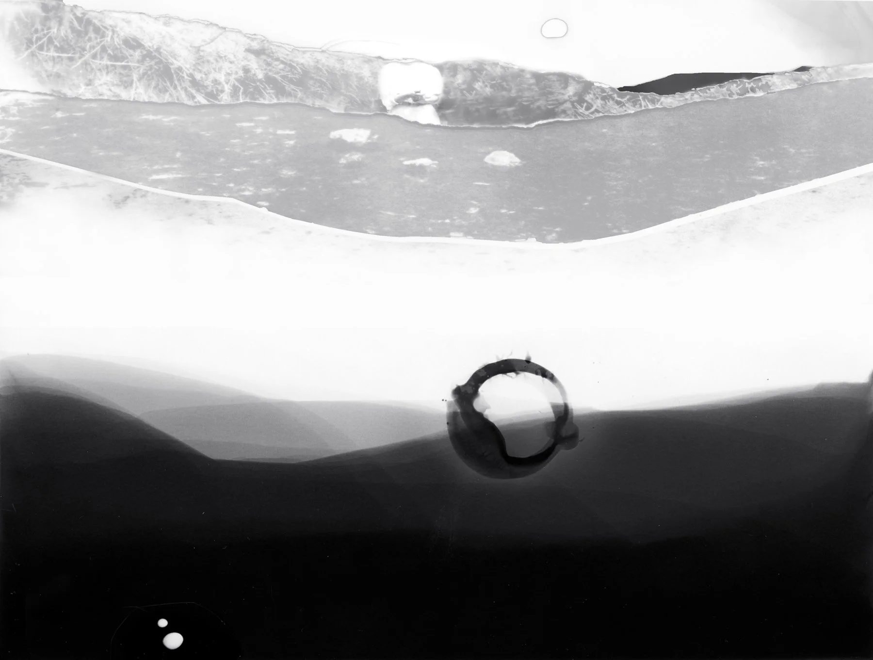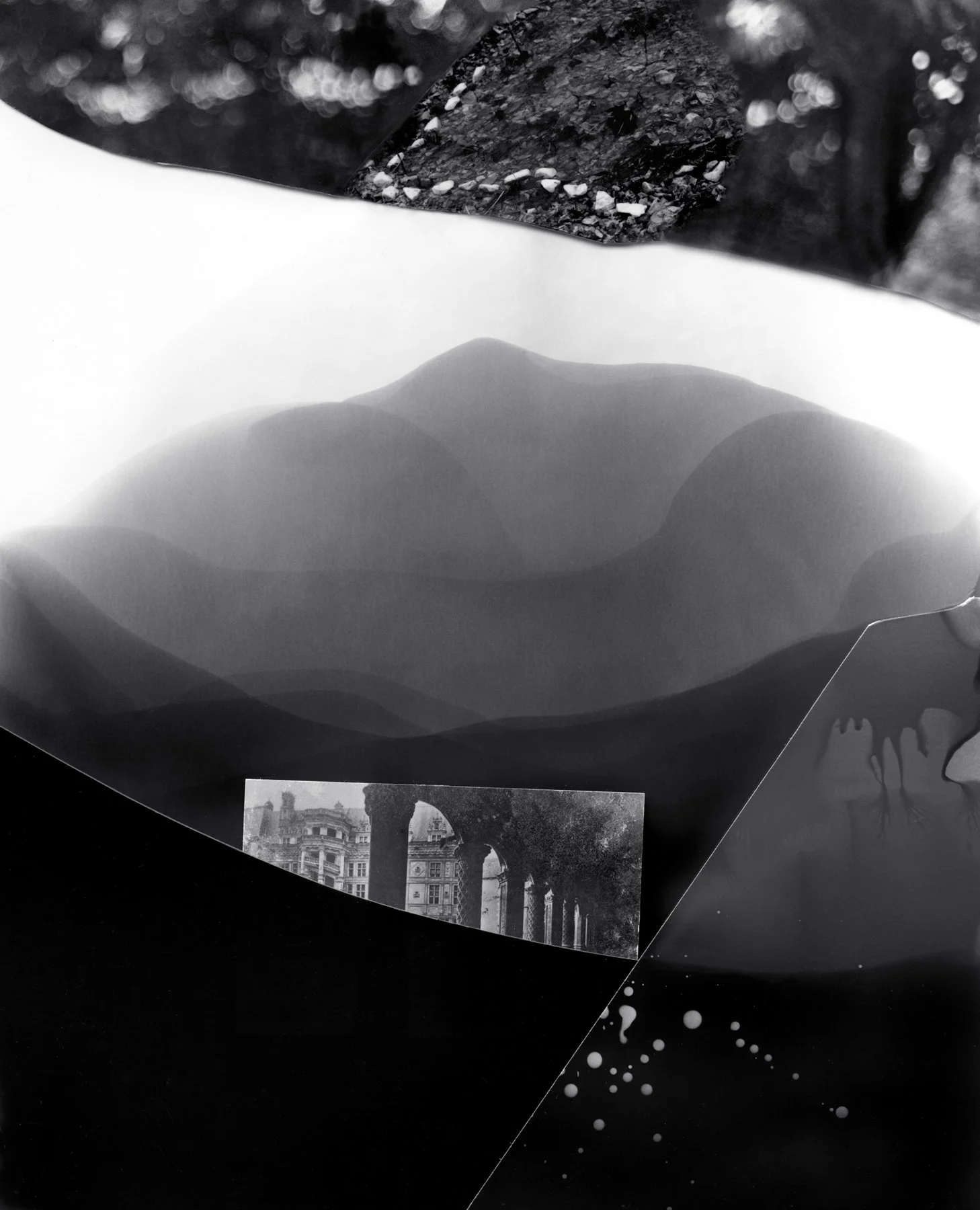 My fictional and fragmented images, made from camera-less chemigrams and collaged snippets from my own photographs, attempt to slice through history, space, galaxies, and reconfigure our understanding of our position in the world as both precarious and hopeful.