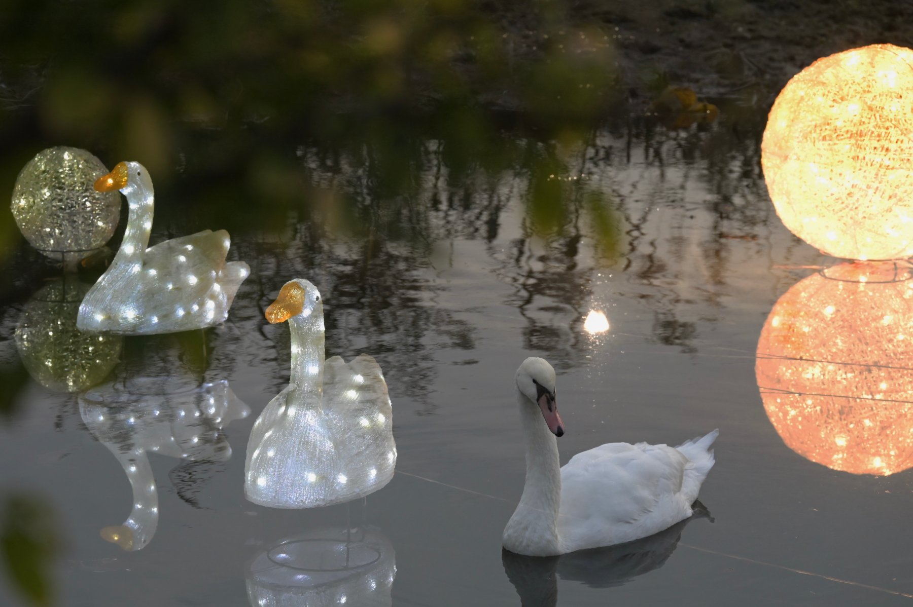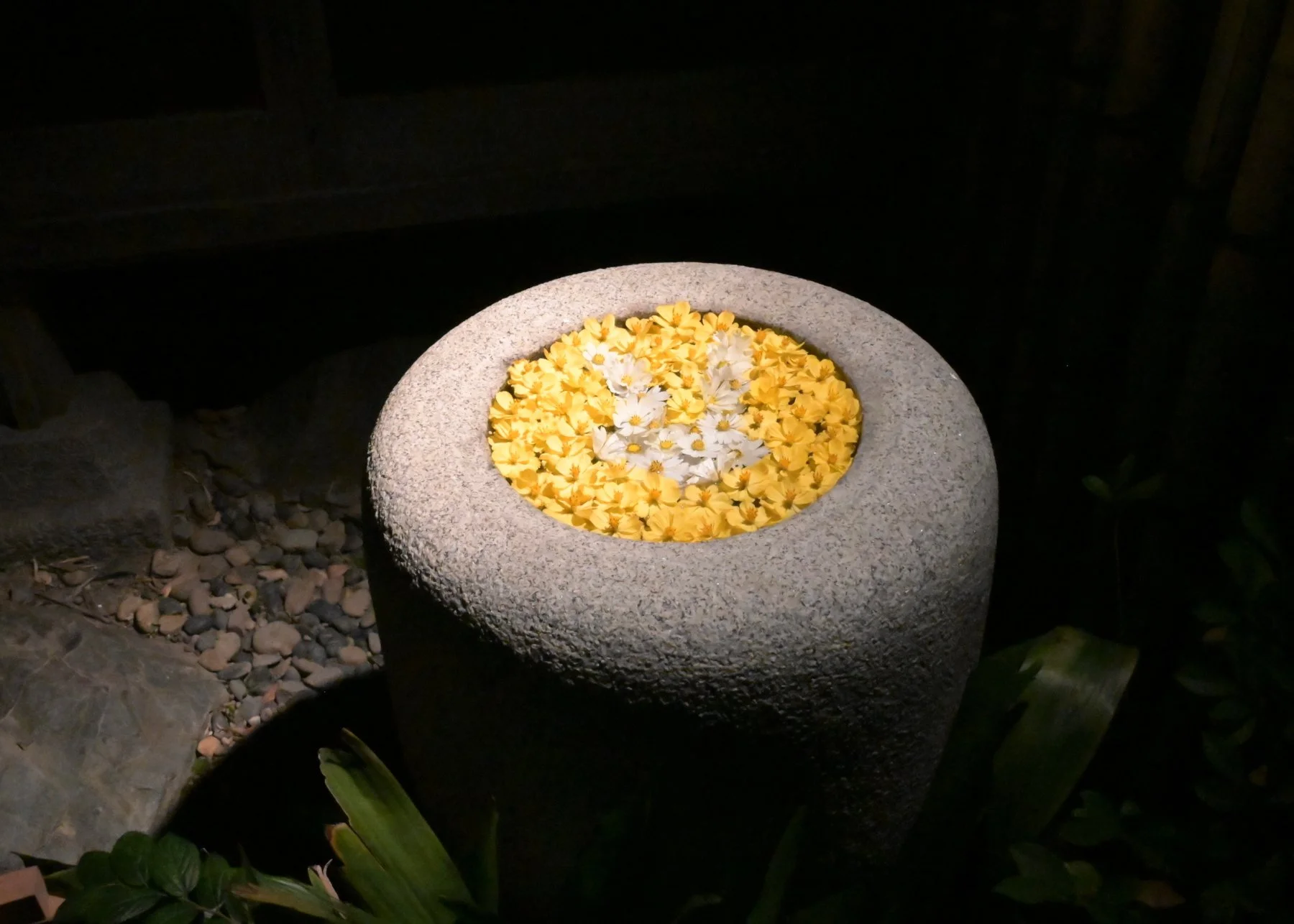 Though a scientific oversimplification, the claim that the human body is 70% water takes many of us back to our elementary school days and reminds us of being lectured to drink eight glasses a day. As we grow older and become more active, responsible architects of society, water flows from us to our creations. It flows through the movement of our bodies as we make a canvas of it to co-create with the natural world: cultivated botanicals, floating flower arrangements, and illuminations installed in a pond.