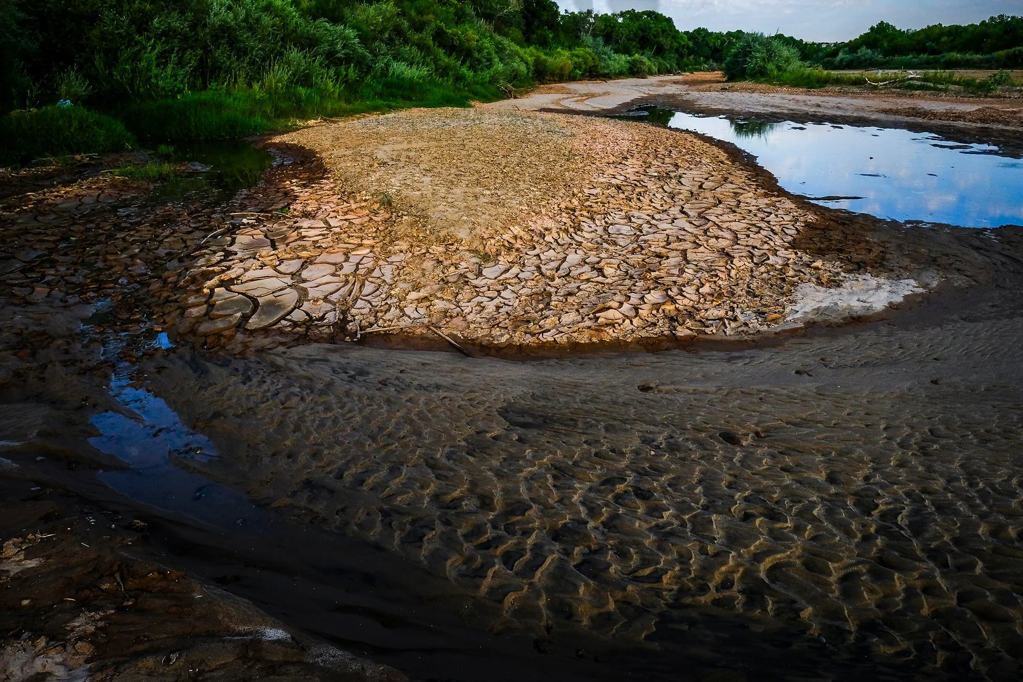 The Tewa people named her P’osógeh ~ Big Water. She must have been astonishing then. A ribbon of glimmering snowmelt from the tip of her head in the San Juan mountains, with shoulders sloping down into a belly that pulses through the verdant heart-valley of New Mexico. Here in the middle Rio Grande Basin, her waist measured over a mile wide before colonized hands set out to tame her. Now scorched, her emaciated legs drop over sixteen hundred feet, gasping along the heartbroken border between Texas and Mexico before surrendering into the Aztec's Goddess of the Sea that we now clinically refer to as the Gulf of Mexico.