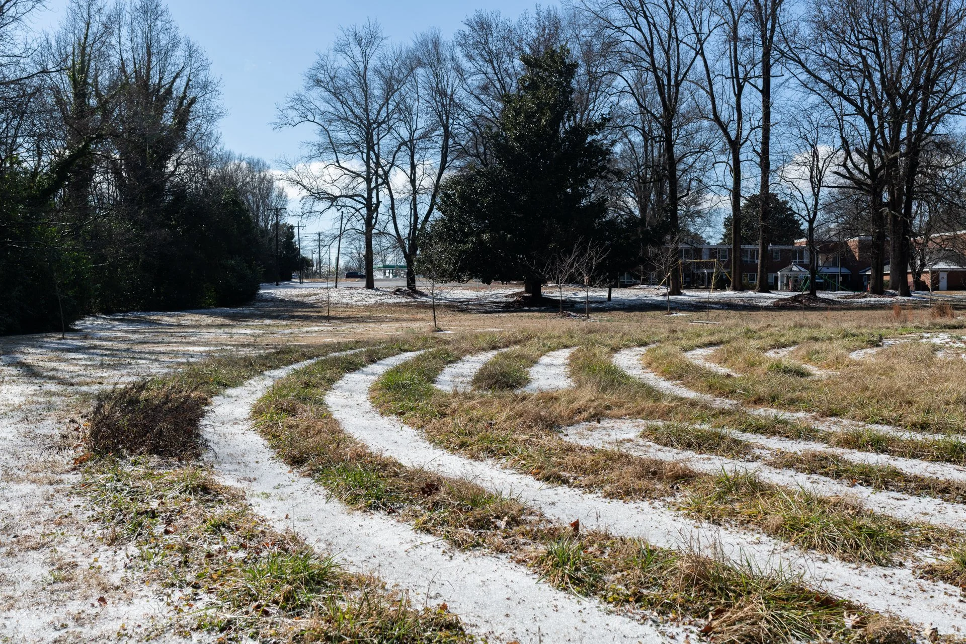 I am observing, noticing and exploring a food forest, cultivated in and among a labyrinth, at The Grove, a Presbyterian church on the East side of Charlotte, NC. In 2019, a small group of church members visioned and built a labyrinth on the land behind the sanctuary of the church. In the Christian tradition, labyrinths are ancient and modern meditative tools featuring a winding walking path that typically represents a journey towards God.